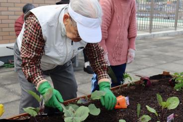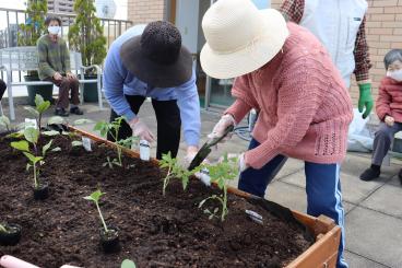 お客様自ら、植える場所を話し合いながら、真剣な眼差しで植えていきます。