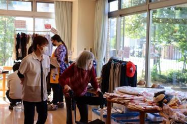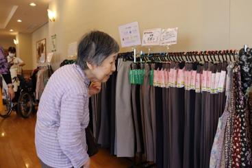 1階地域交流スペースに所狭しと並んだ衣類に北海道などの物産もありました。