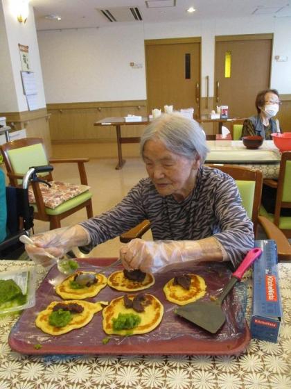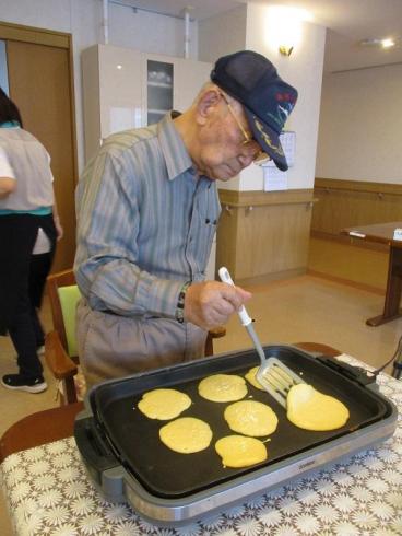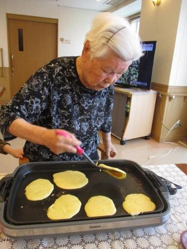 次に混ぜた生地を熱したホットプレートで、こんがりと焼き色がつくまで焼きます。