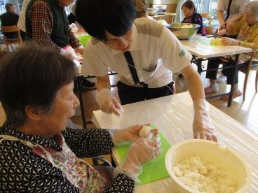 こちらは、稲荷づくり班ですね。食べやすい大きさに、丸めてくださっています。