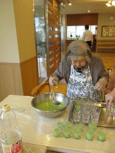 本日のスイーツは、抹茶ババロアになります。