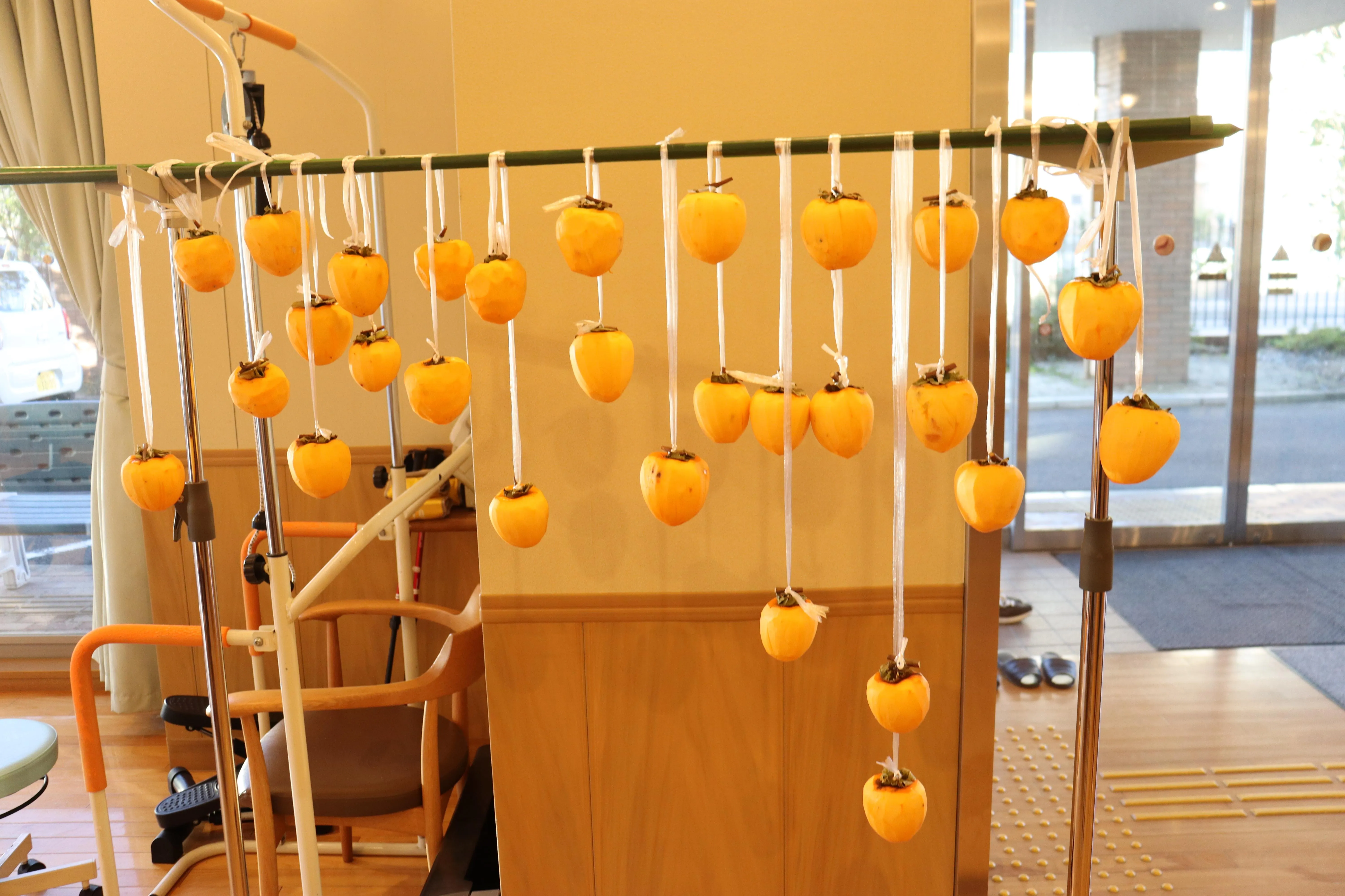 中の芯までやわらくすることが大事で、それをすると柔らかく、甘い干し柿になる。