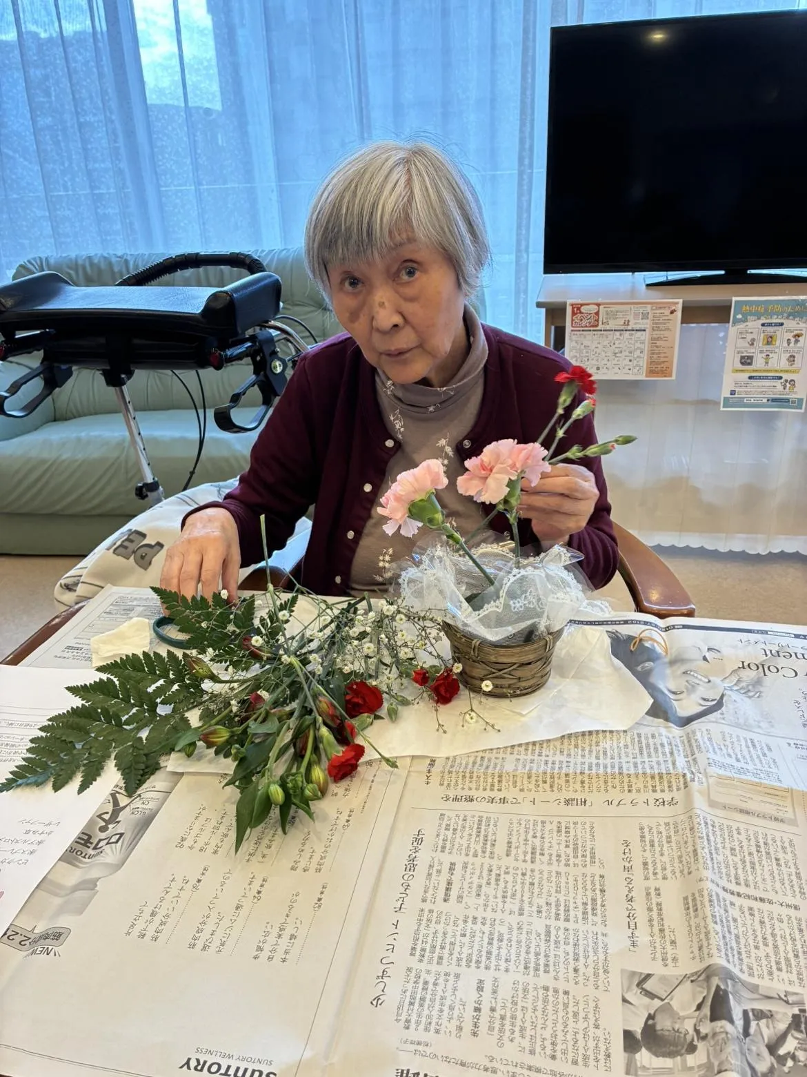 かすみ草も加えて完成。