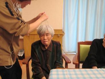 さて、こちらは『ヘッドスパワイヤー』なるものが登場!体験中です。