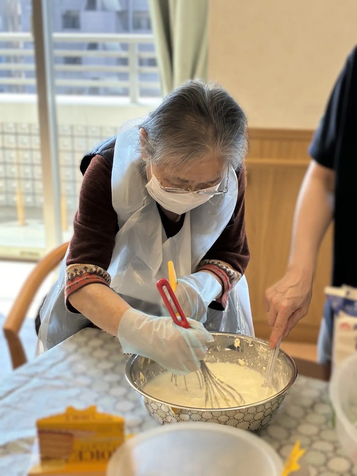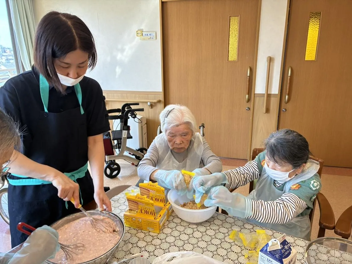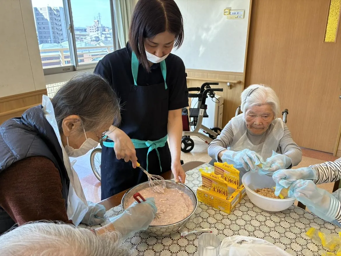 まずはレアチーズを作る方と、土台のビスケットを細かく砕く方と分かれて作業。