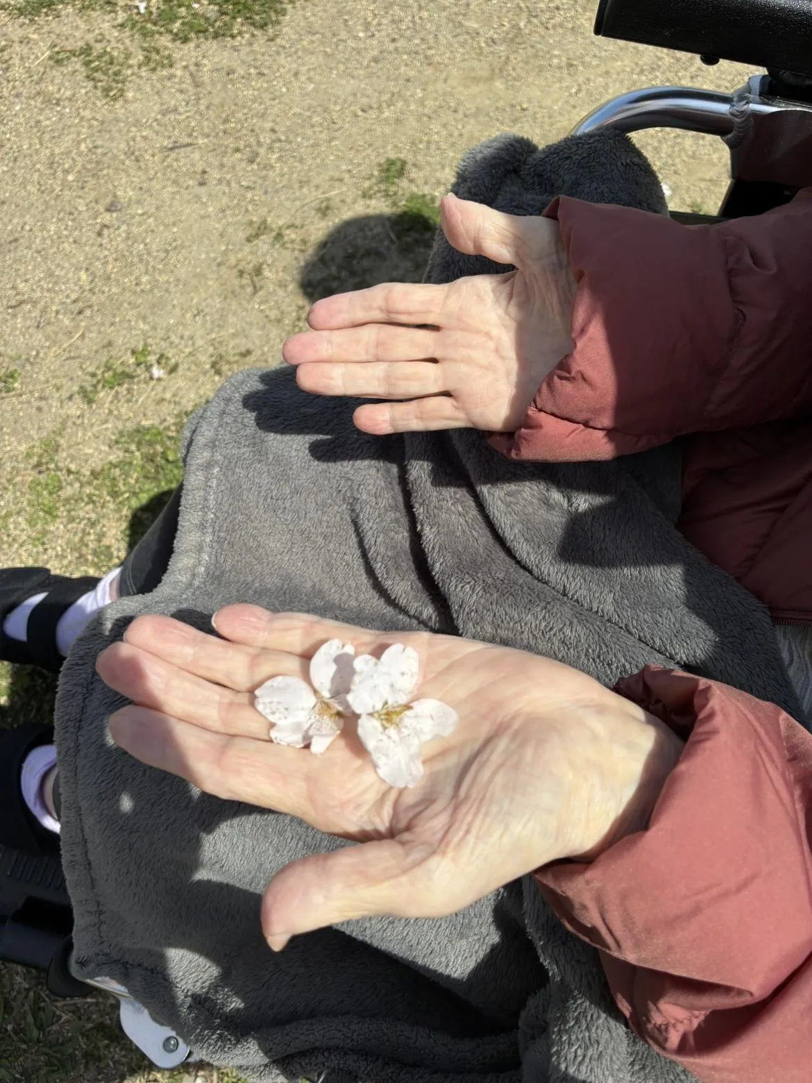 暖かい日に、近くの桜並木で花見と散歩を兼ねた外気浴に行ってきました。