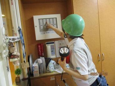 火元は4階東側廊下、火災報知機が作動、消防へ通報、移動時には転倒等無いよう火元に近い居室から避難していきます。