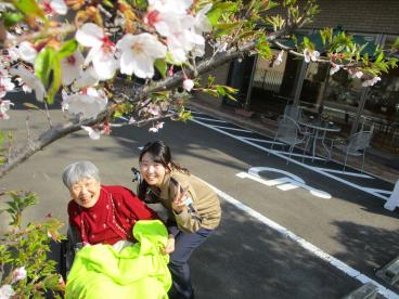 また、最近は寒さが和らぎ春らしい陽気になってまいりましたので、屋上やお庭で日光浴を行いながら、楽しく運動を行っていただいております。
