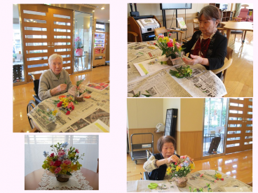 一応、見本はありますが、ご自分の好きなように挿して頂くのが、ツクイ・サンシャイン仙台流 (笑)