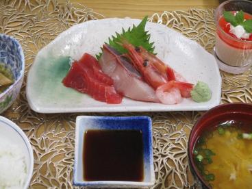 お刺身内容は、定番の本マグロ、ハマチ、甘えび!!