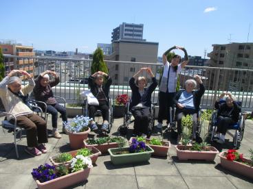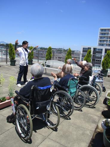 こんな日は、日光浴を行いながら、皆さんで一緒に身体を動かしましょう!