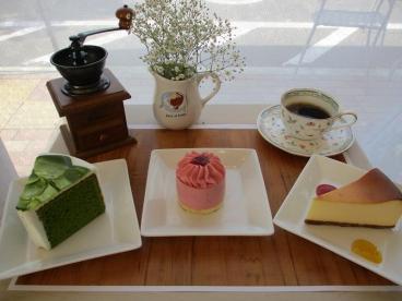 ケーキは三種類から選べます。一番人気は、みんな大好きいちごをたっぷり使用したいちごムースのケーキでした。選んだケーキを、お隣に座ったお客様同士で仲良くシェアしているテーブルも!