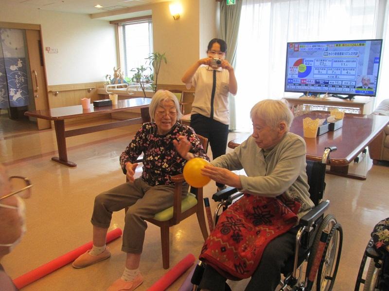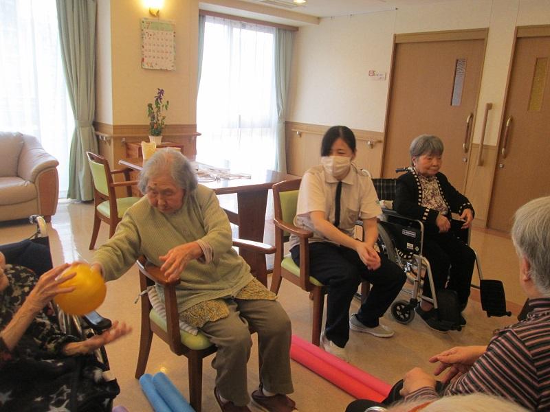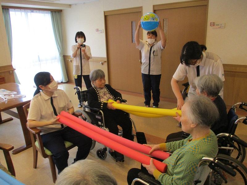 皆様に、プールスティックの両端を持っていただき、ビーチボールを送ります!!
