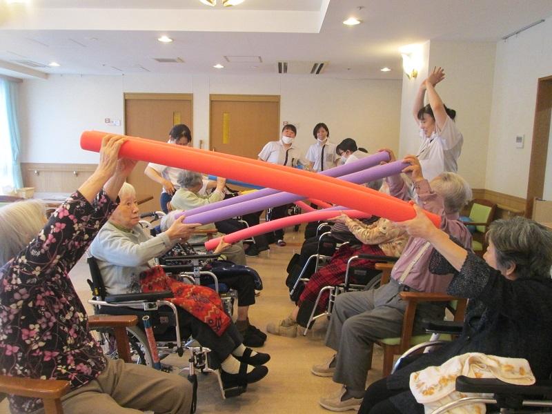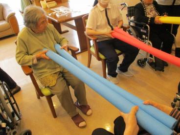 今回は、いつもと若干趣向を変え、『プールスティック』を用いたゲームを実施しました。