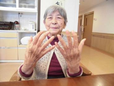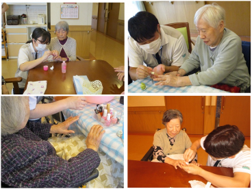マッサージで艶々になった爪先には、お好みでネイル色などを選んで頂き塗っていると・・・