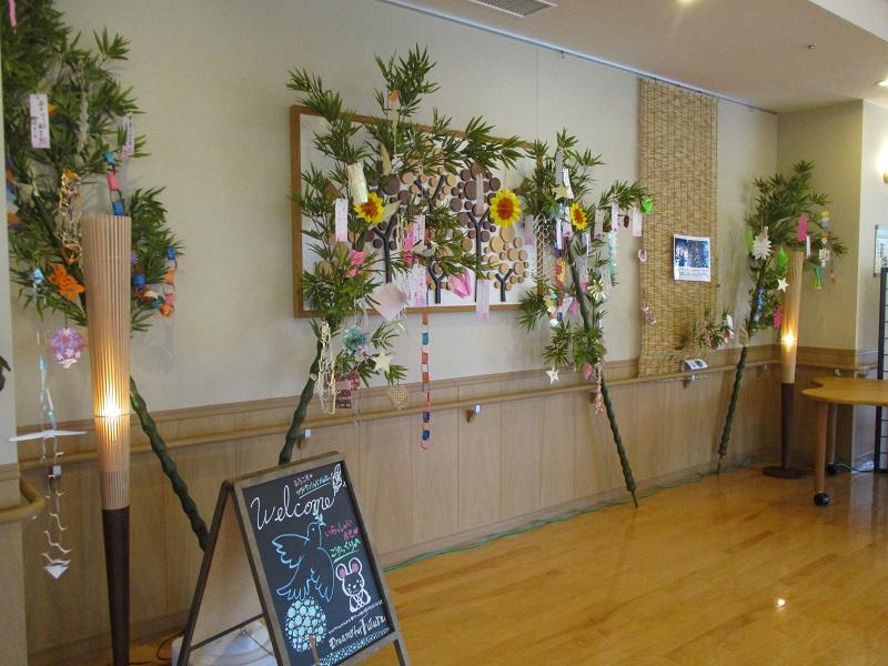 ツクイ・サンシャイン仙台では、エントランスに、七夕飾りを設置しました。