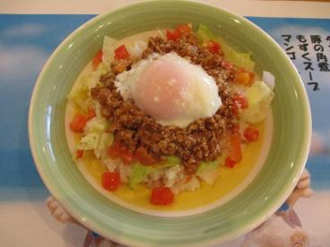 タコライス、もずくスープ、豚の角煮、マンゴープリンの献立は、華やかで美味しいと大好評。