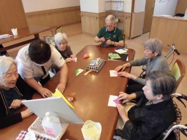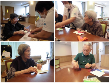 意外と指先を使う折り紙で、月末開催予定の〝紙飛行機大会〟に向け、最強の飛行機作りスタート!