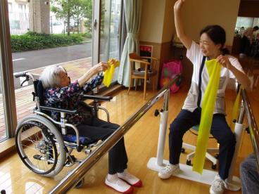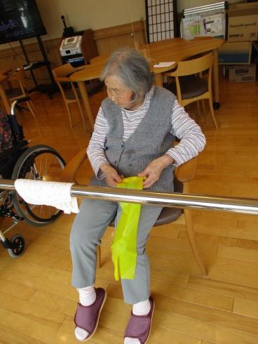 機能訓練のご様子~え?ゴム?
