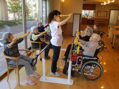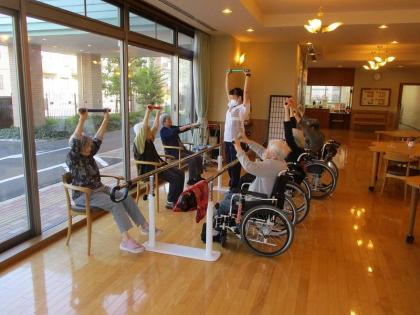 皆様、声掛け合いながら楽しく体力づくりを行っています。機能訓練のご様子紹介でした!