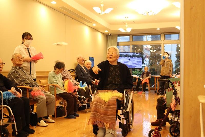 「楽しいなあ。」「もっと飛ばしたいなあ。」「また、これ、やってね!!」皆様に、とても喜んでいただけたようです。今後も、昔懐かしい気持ちに戻っていただけるような、楽しいレクリエーションをどんどん企画してまいります!!皆様、お楽しみに~