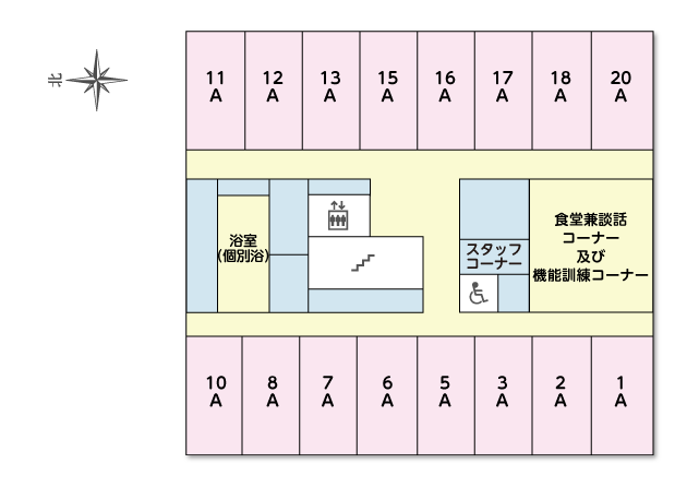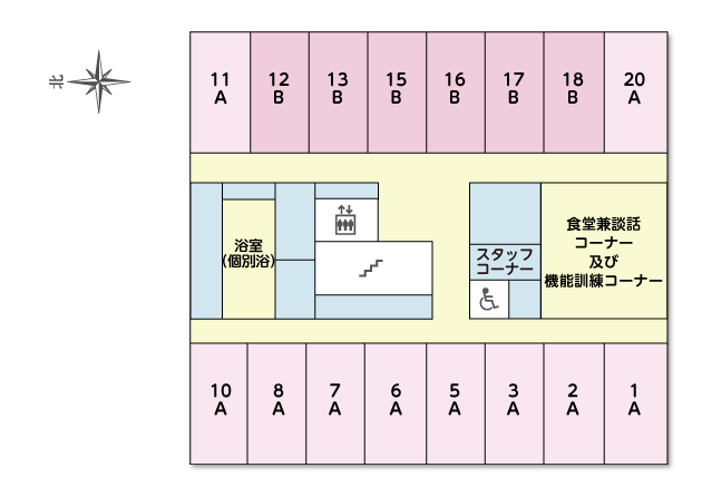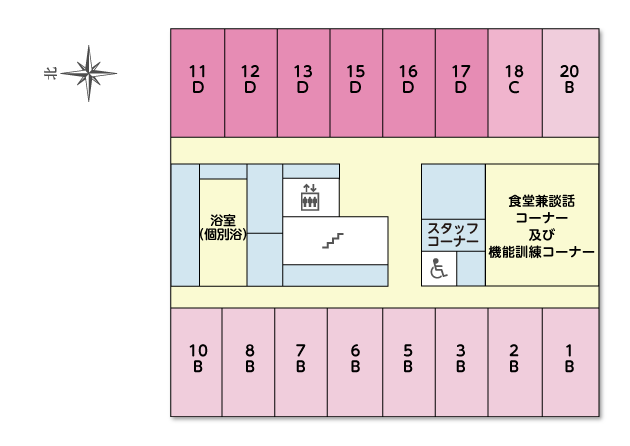 - ※適切な介護サービスをご提供するために一定期間を設け、医師の意見を聞いたうえで居室を変更させていただく場合があります。この場合ご本人及び、身元引受人の同意のうえで実施いたします。居室タイプにより居室料相当額が変更となる場合があります。