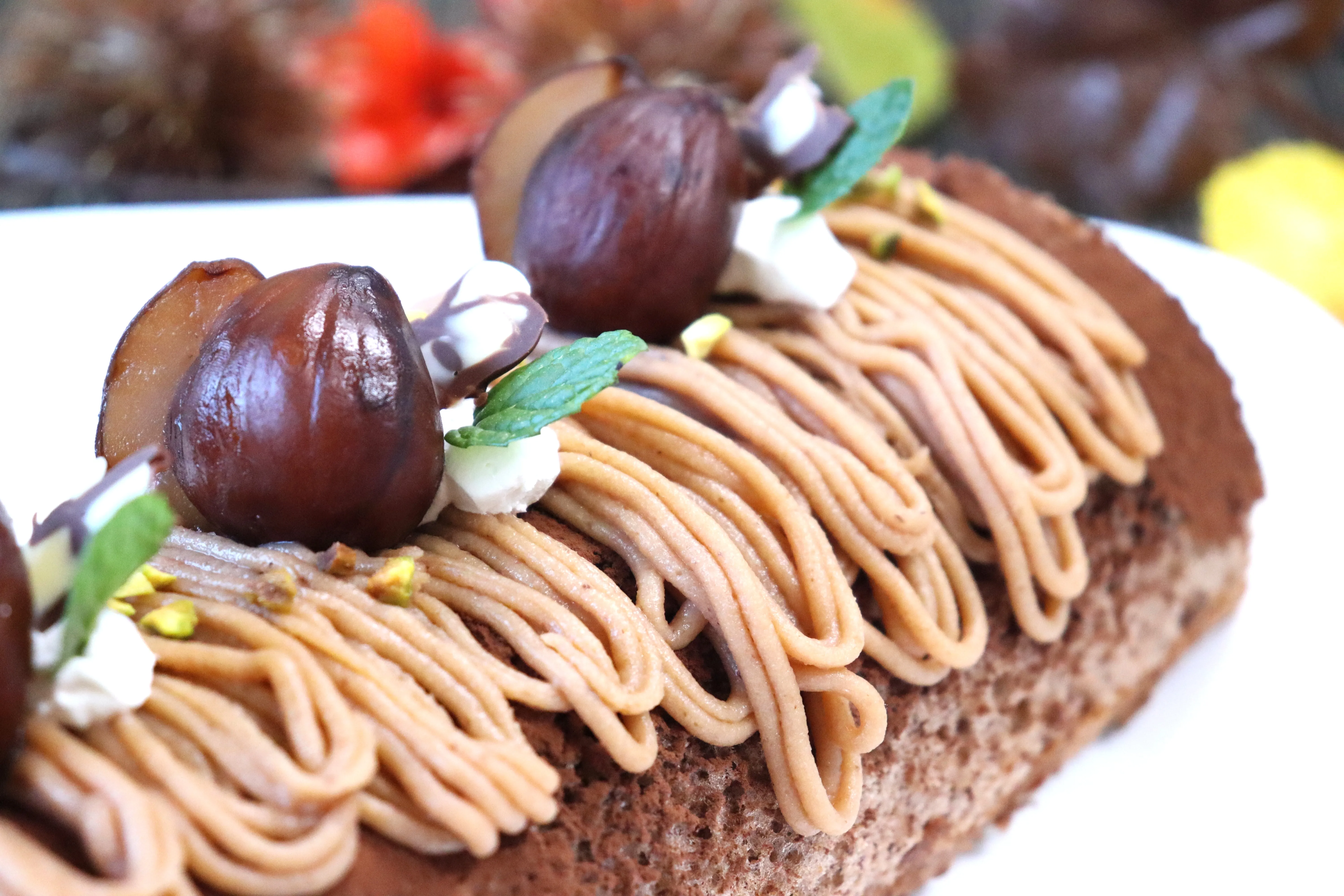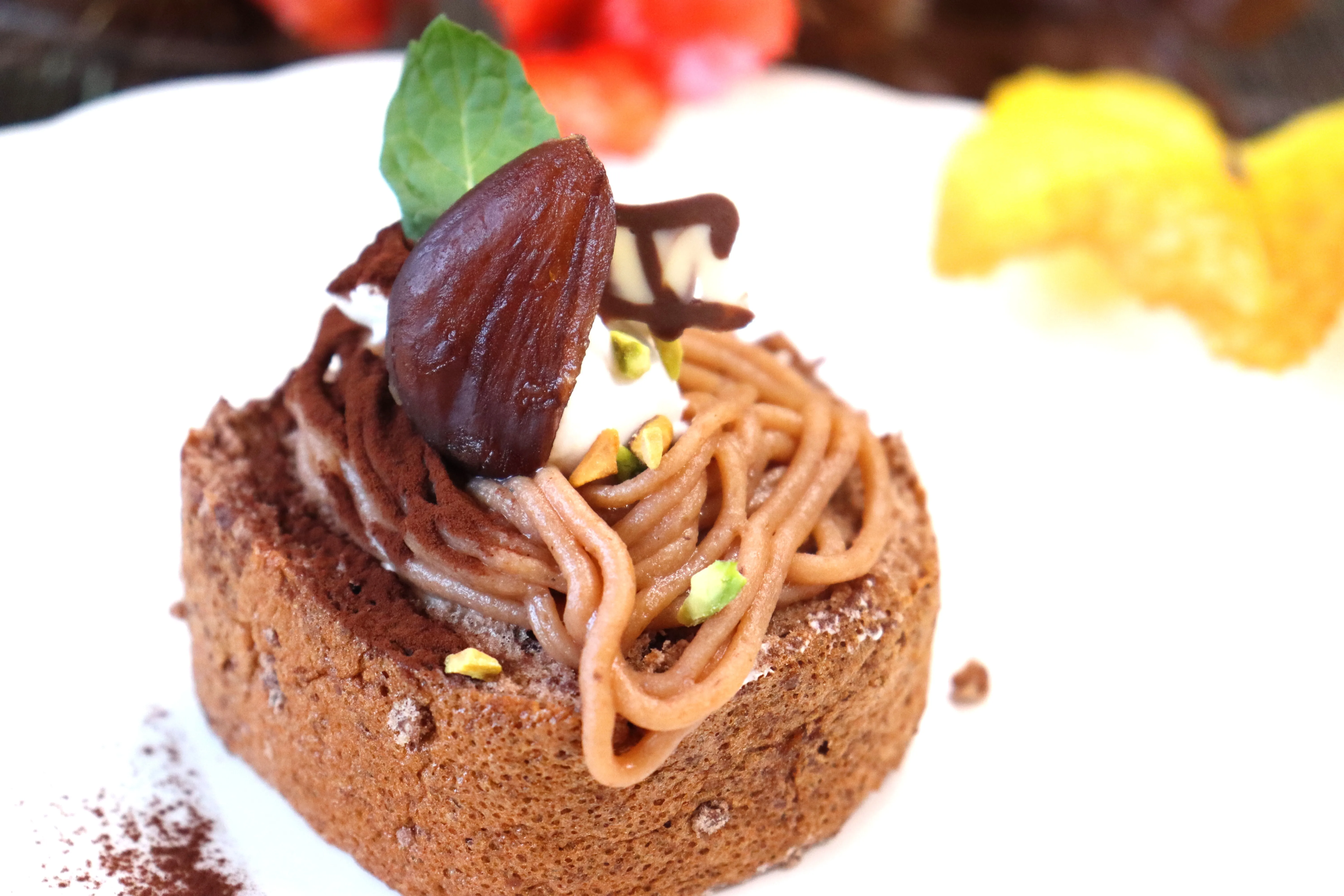 今月は秋の味覚「栗」をもちいたモンブランケーキです。