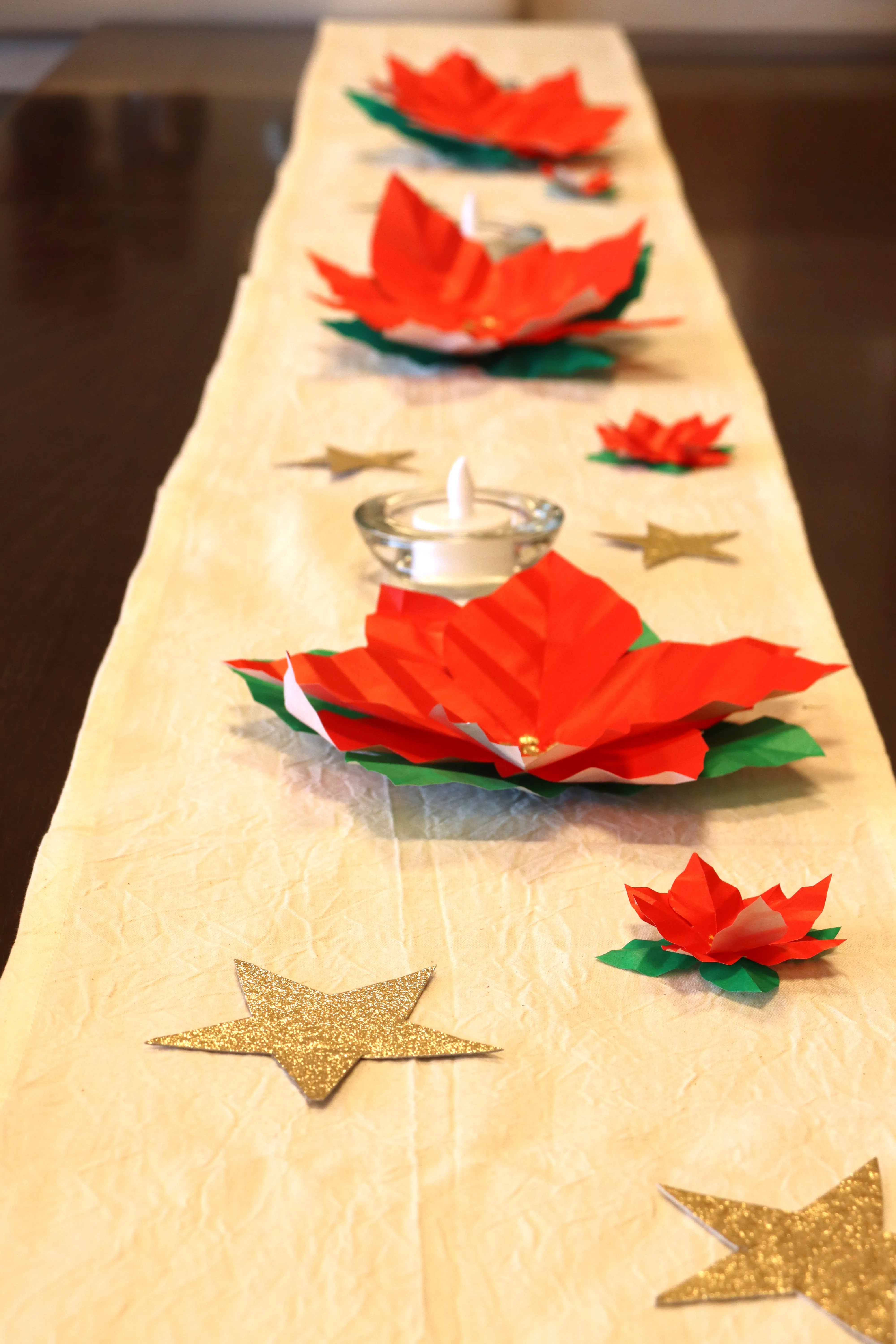 今年のクリスマス準備が始まりました。ポインセチアのお花を、テーブルアレンジに使います。