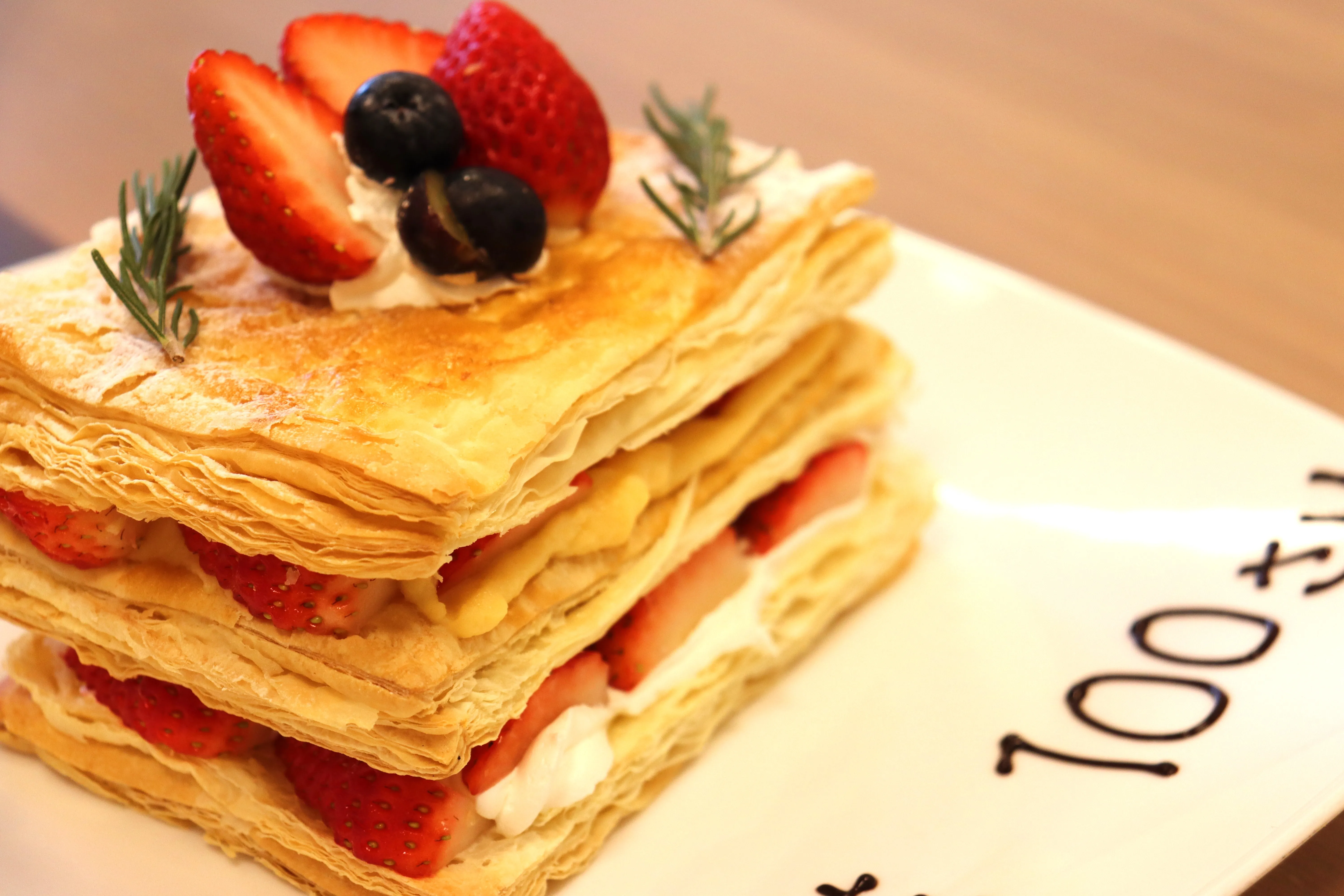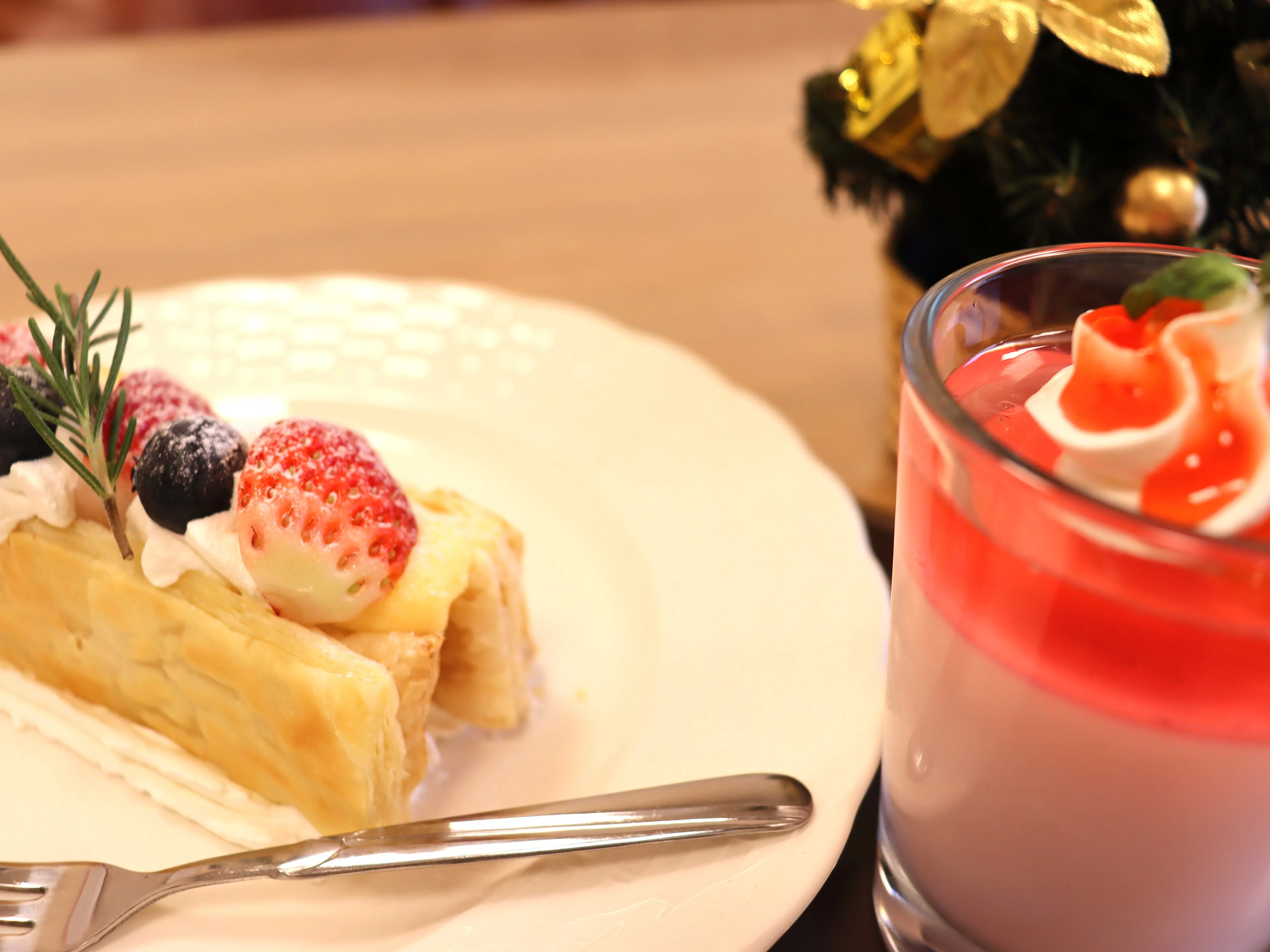 12月に誕生日のお客様も、一緒にお祝いをしました。皆さん、ミルフィーユの食感に満足されていました。(グラスパフェ:イチゴムース→飲み込みにくさがある方)