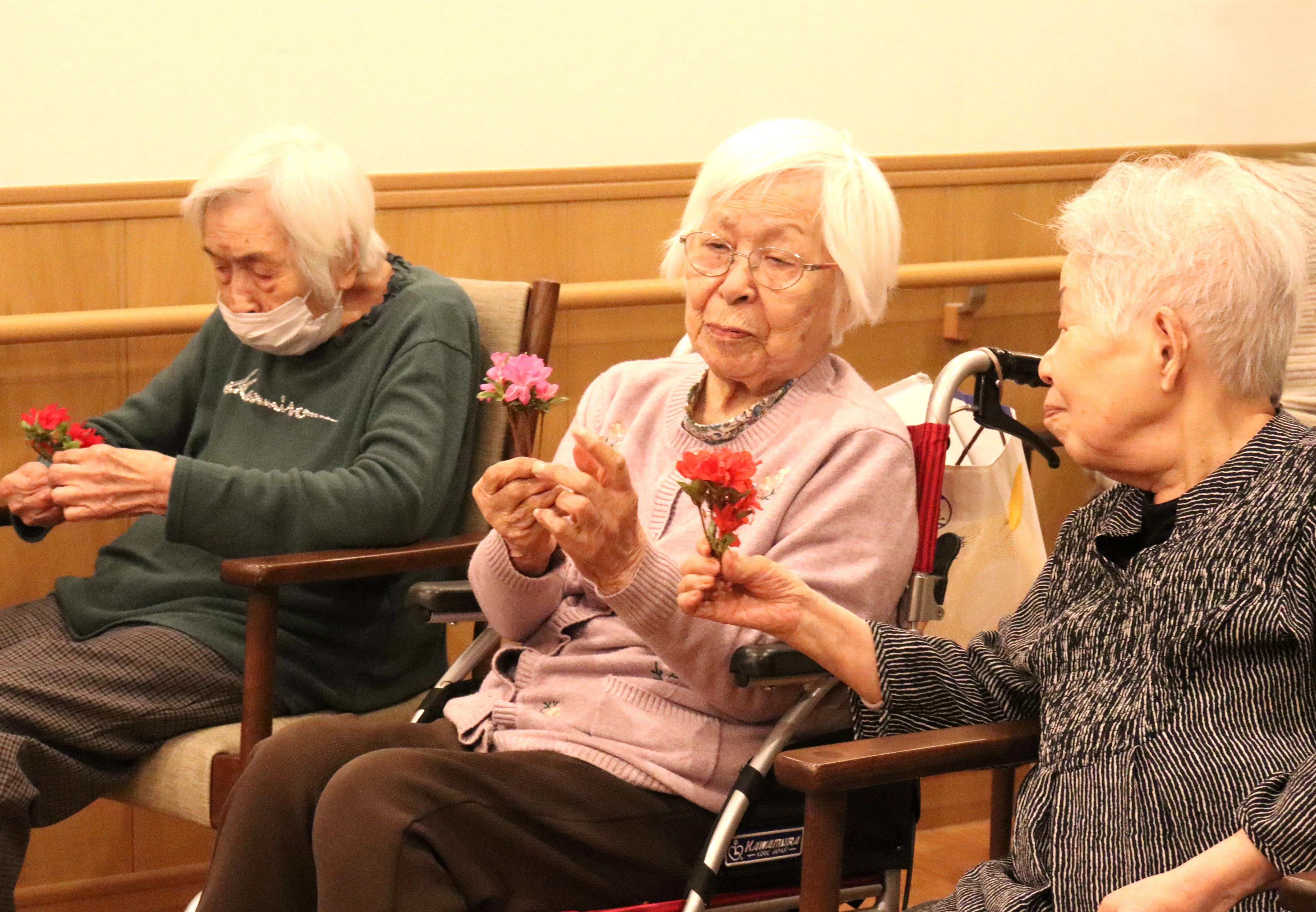 色違いのツツジをお互いに見せ合う姿も見られました。次回の音楽セラピーも楽しみですね!