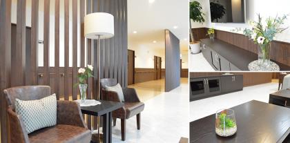開放的な空間が広がるエントランスホール。ソファで一息ついたり、ご家族で談話をされたりと、ゆったりとした憩いのひとときをお過ごしいただけます。