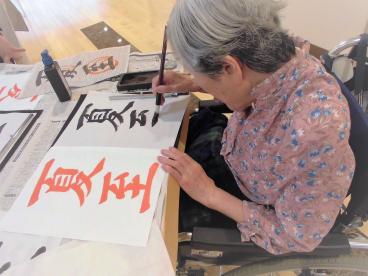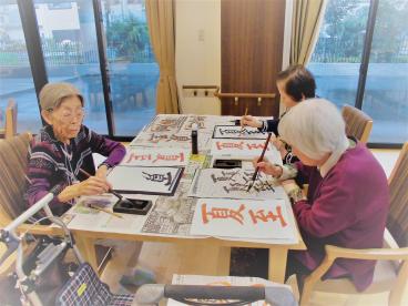 「私は書道なんてできないわ。」「書道なんて何十年ぶりよ。」「ちょっとやってみようかしら。」など、様々なお声がありましたが、いざ始まってみると皆様のやる気スイッチが入ったようで、黙々と書かれていてスタッフもびっくりいたしました。