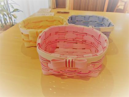 先日講師の先生を招いて、今大人気のクラフトバンド教室を開催いたしました。