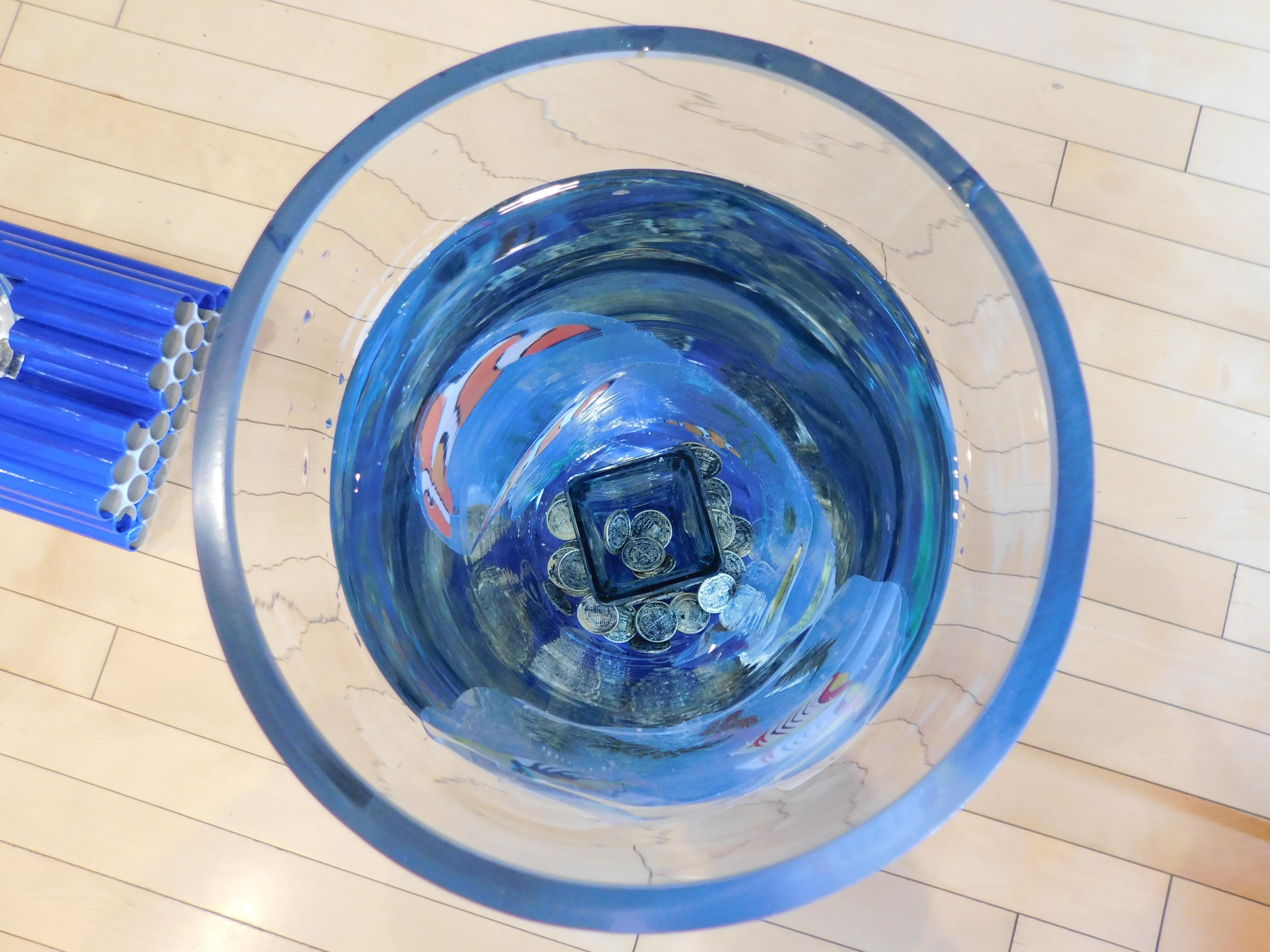 水槽の中の花瓶に、コインを入れられるかどうかのゲームです。