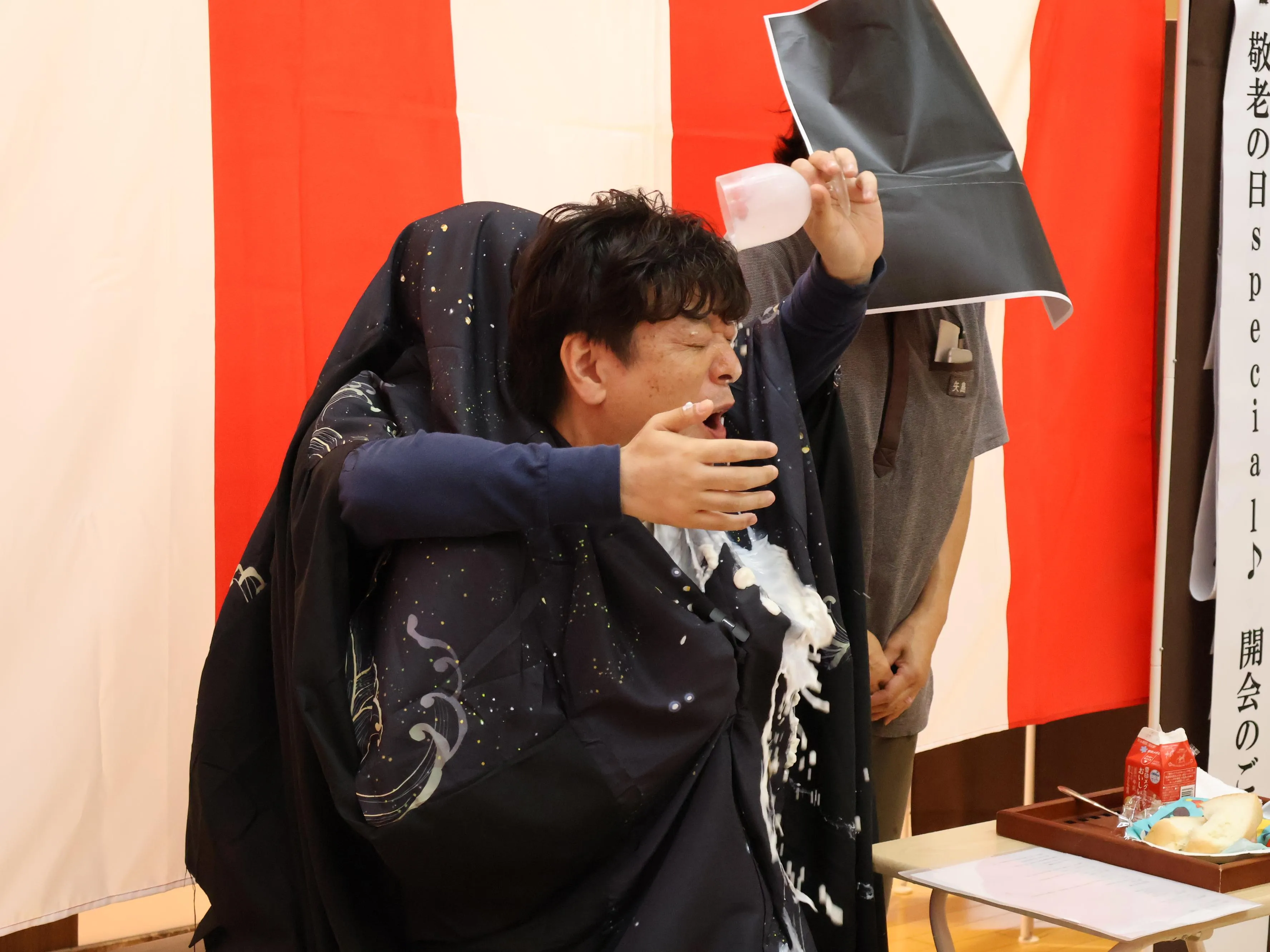 最後は、頭から牛乳をかぶってしまうハプニング(?)があったり、身体を張った施設長の出し物に、皆様暖かい拍手を送ってくださいました。
