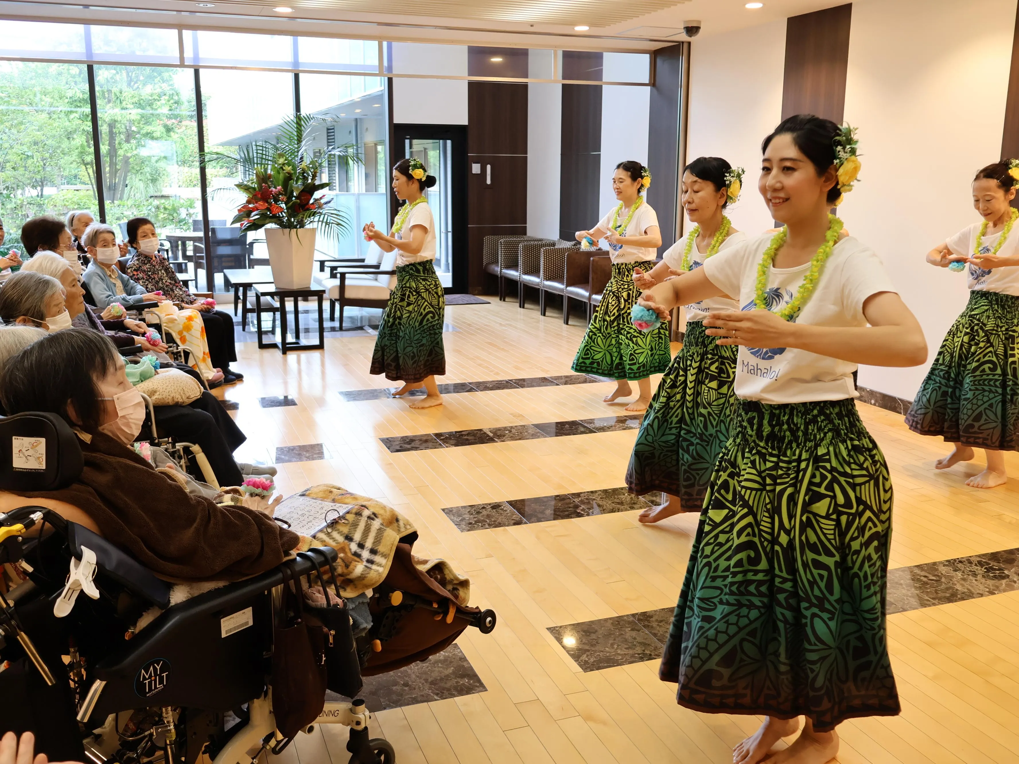 綺麗な衣装とハワイアンミュージックに合わせて優雅に踊る姿に皆様「綺麗ねぇ」と目をキラキラさせてご覧になっていらっしゃいました。