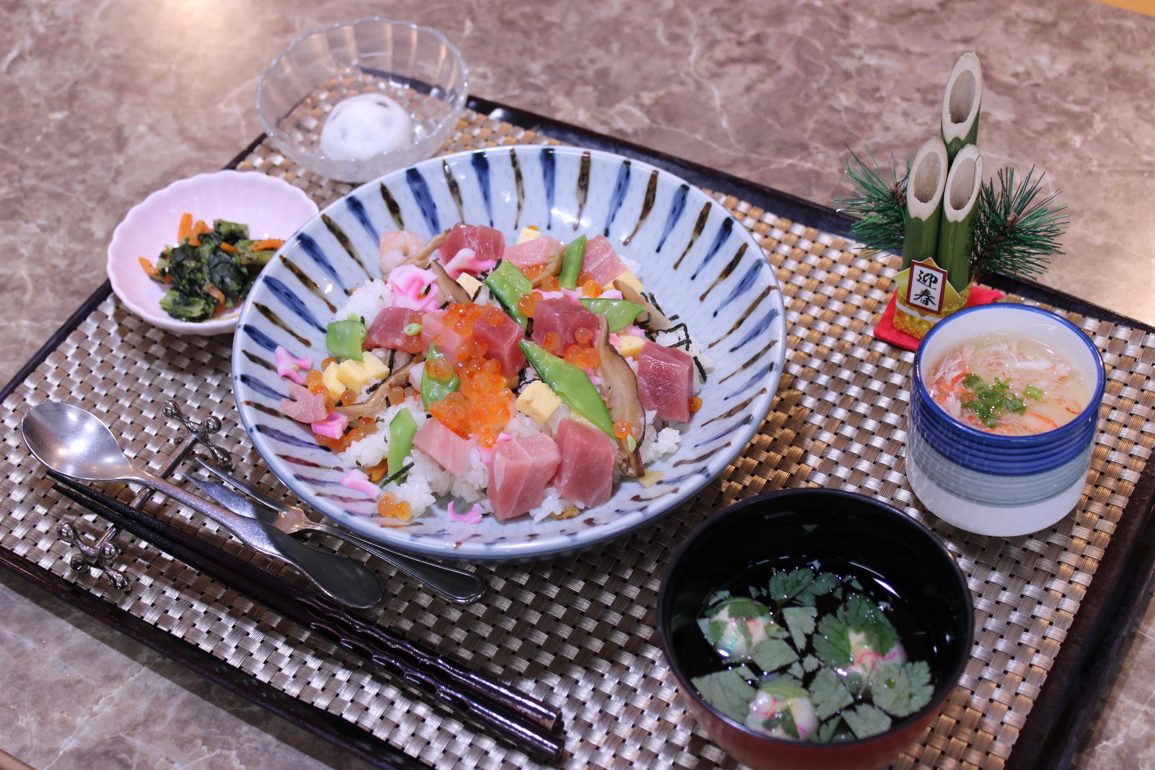 彩りも美しい海鮮ちらし寿司に、旨みたっぷりの茶碗蒸しを添え、見た目にも楽しんでいただけるお食事となりました。