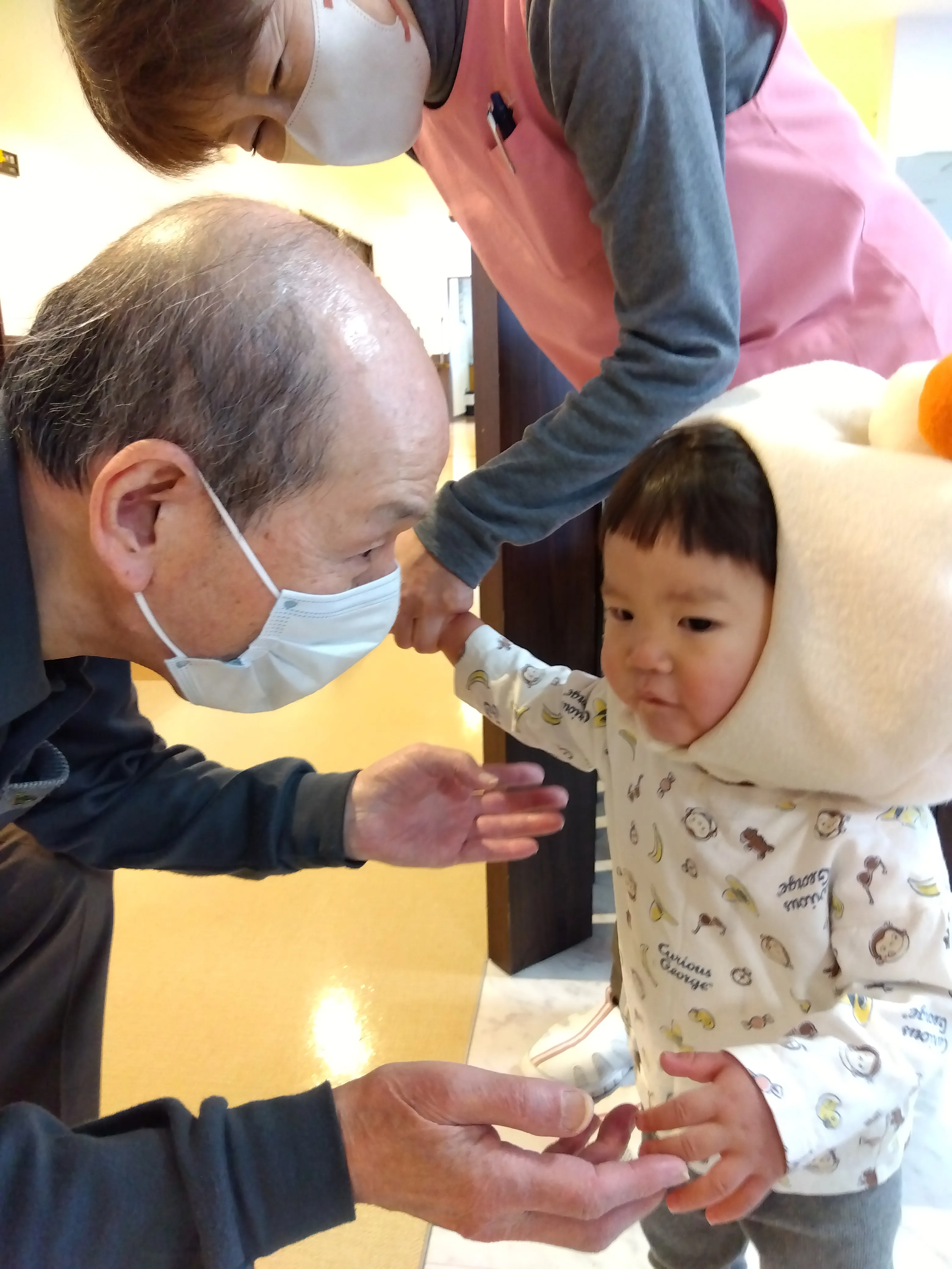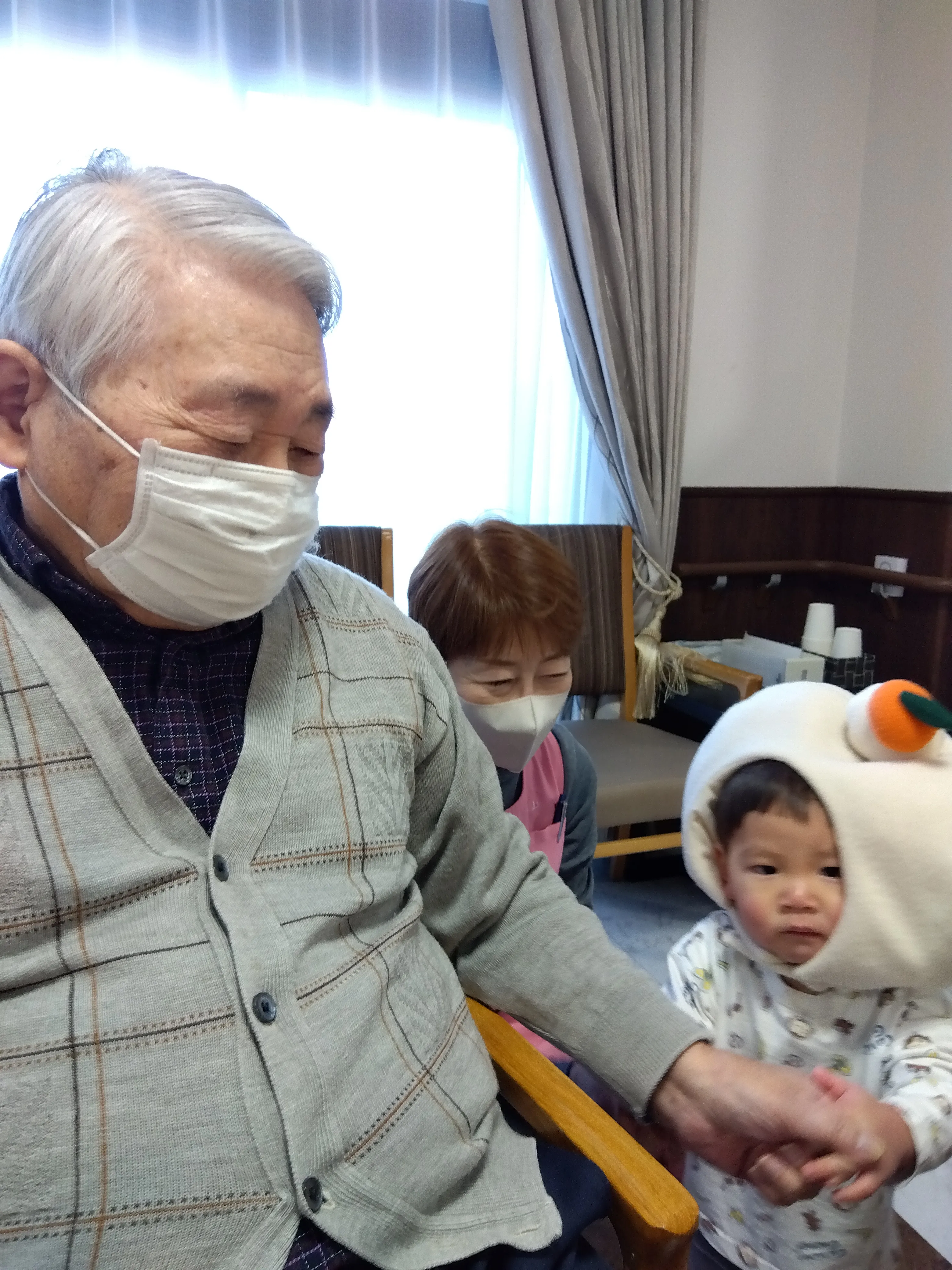 大きな白いお餅にみかんがちょこんと乗った、かわいらしい”鏡餅”の仮装姿で遊びに来てくれました。短い時間ですが、世代を超えた温かい交流のひとときとなりました。