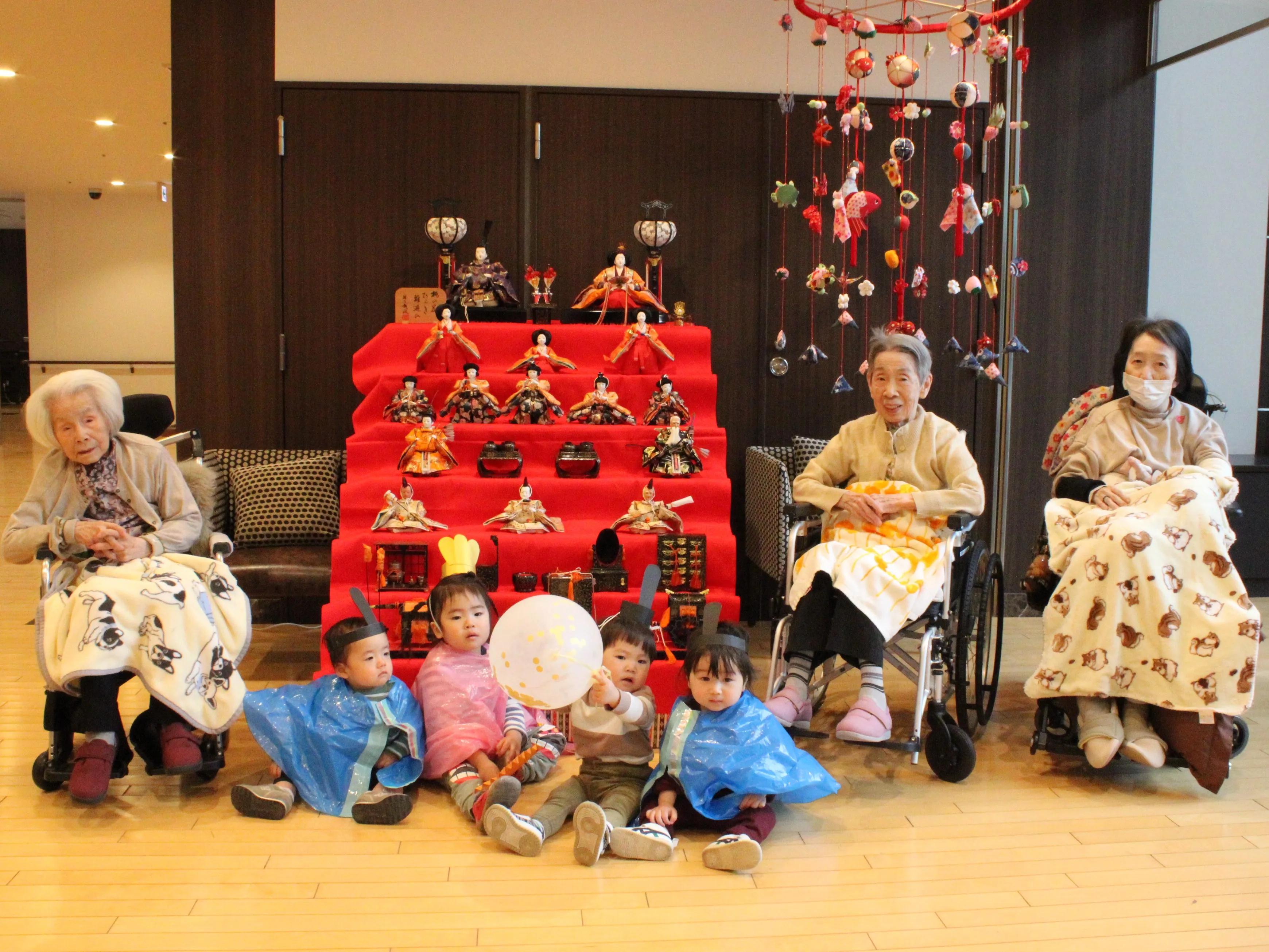 先日のひな祭りに、ツクイ杉並保育園の園児さんが遊びに来てくれました。お内裏様とお雛様に扮した小さな園児たちとの交流に、お客様も笑顔で楽しまれていました。※撮影のためマスクを外しています。