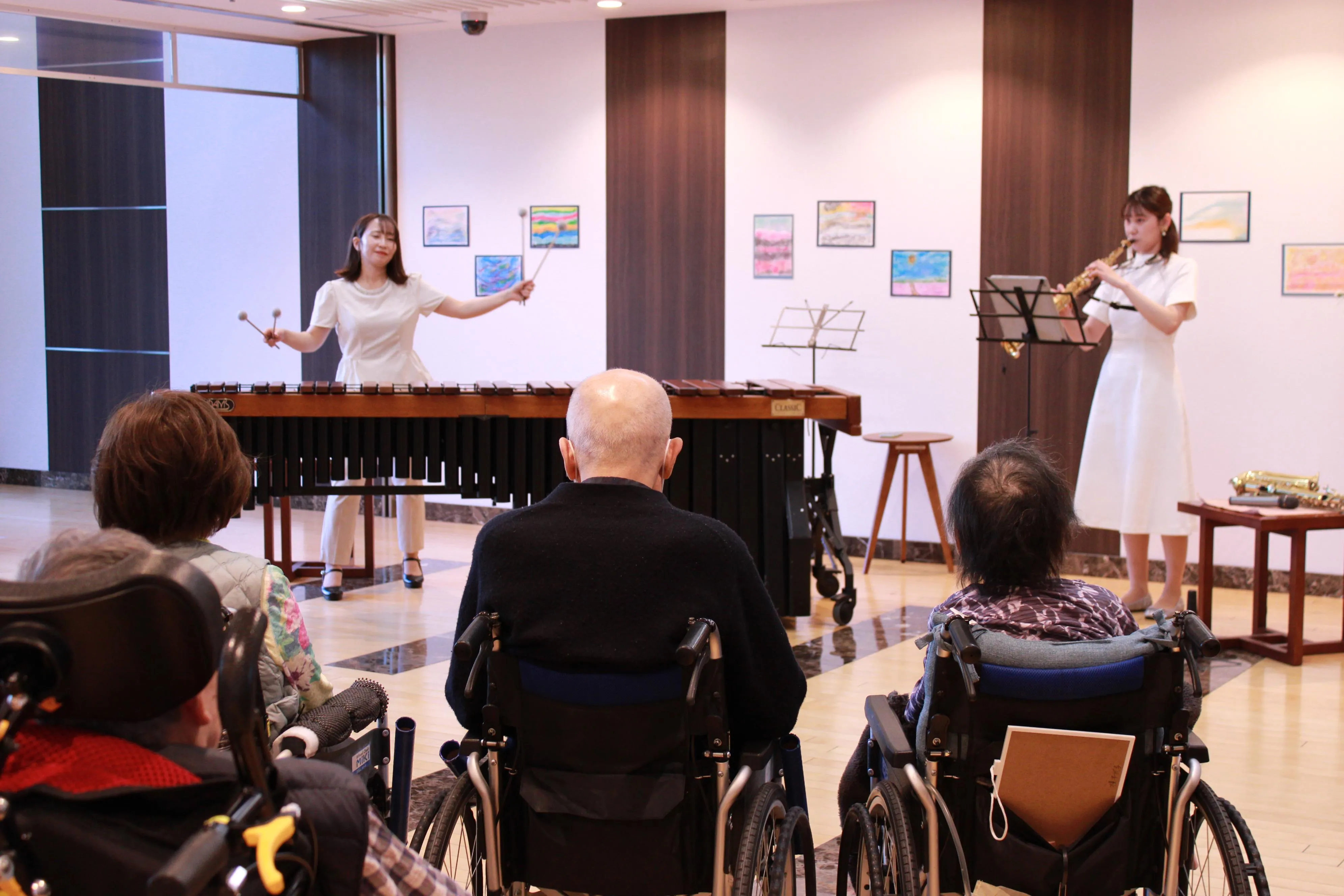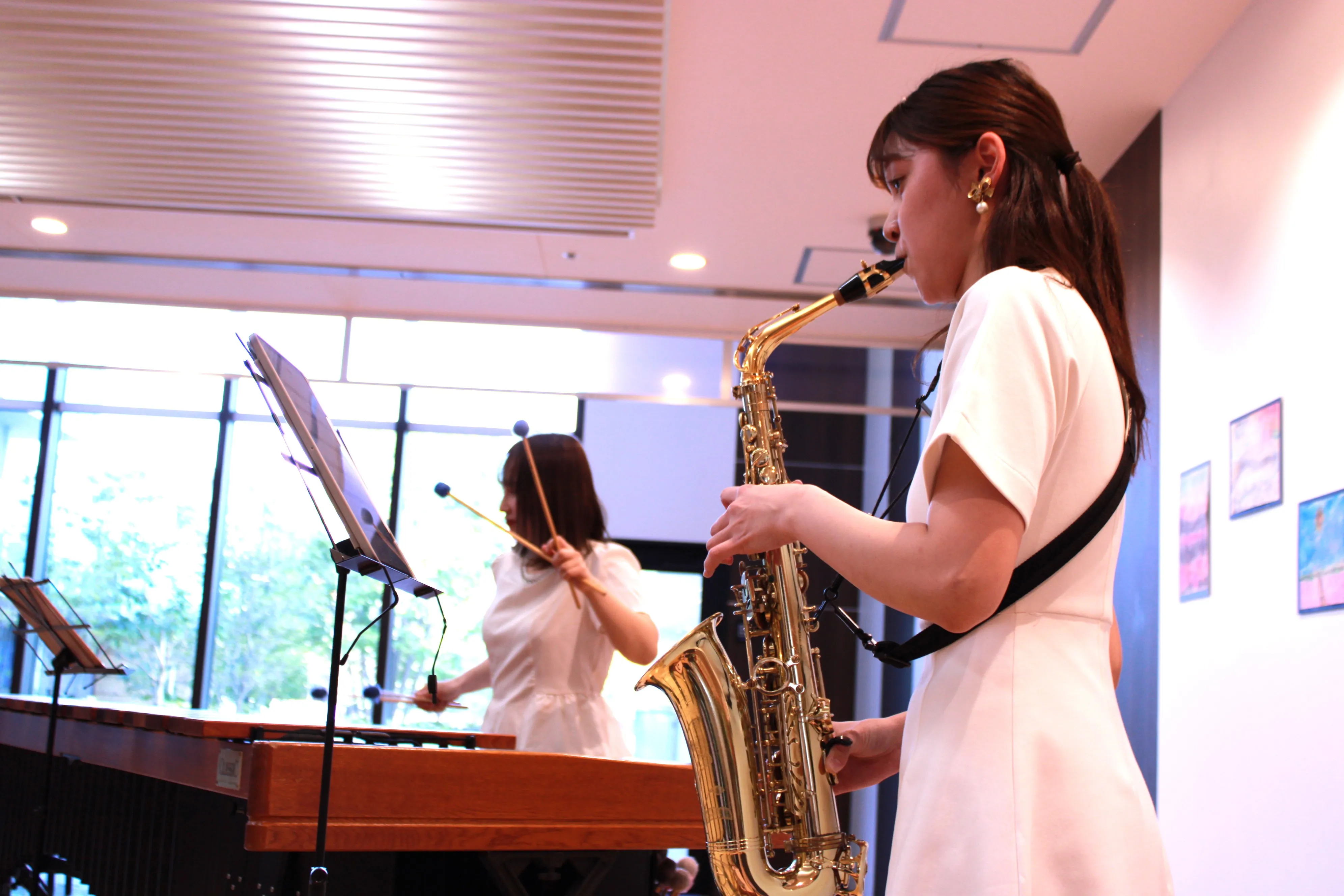 サックス演奏者の平野ななみさん、マリンバ演奏者の大塚真帆さんをお迎えし、「サックスとマリンバによるコンサート」を開催いたしました。