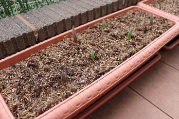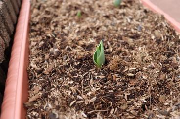 昨年秋に、テラスのプランターにチューリップの球根を植えました。