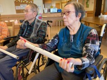 ご高齢の方でも、取り組みやすい棒体操です。主な目的は廃用症候群です。
