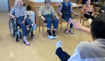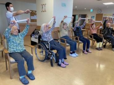 本日は看護師がお客様と一緒に、棒体操と下肢筋力のアップ体操を実施しました。