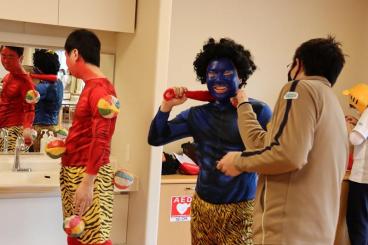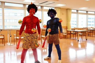 今年の節分レクリエーションは例年と少し違い、紙風船を付けた鬼に皆様で作っていただいたボールを投げて、紙風船を割っていただきます。