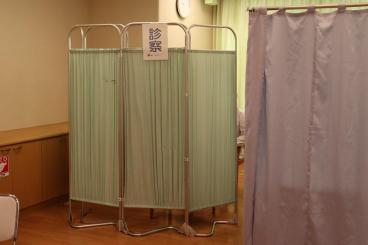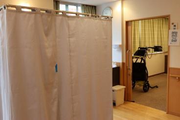 今回は検査センターの方が、検査室前に簡易的な更衣ブースを作ってくださいました!