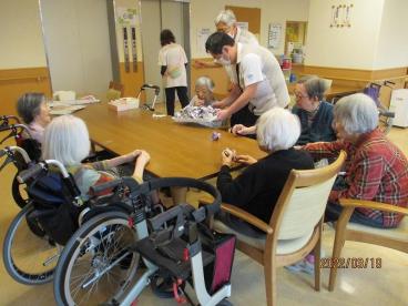 昼食が終わり皆様でゆっくりお過ごし中。。。急に遊びの天才が現れました!!
