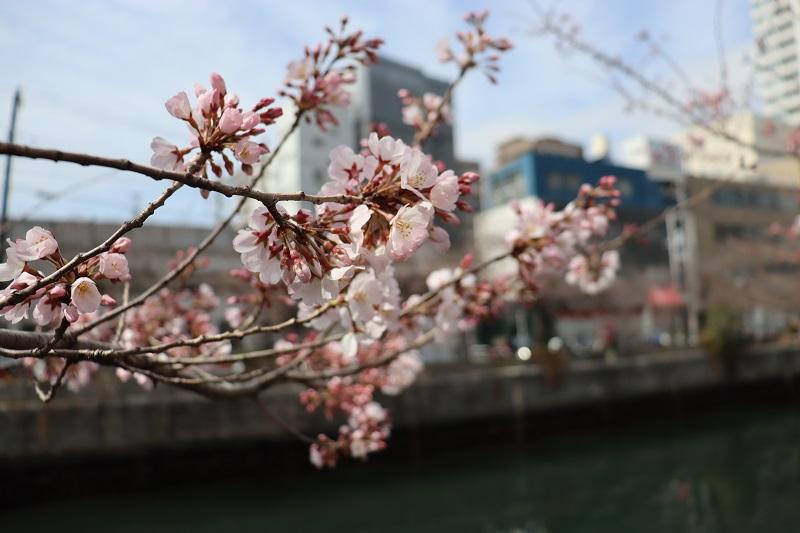 施設横を流れる、大岡川沿いの桜が咲き始めました。