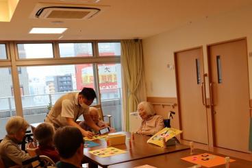お客様から教えて頂いた難しい日本語を言って、職員が驚く場面もあります。お客様からも、持ち前の明るさや人懐っこさが好評です。