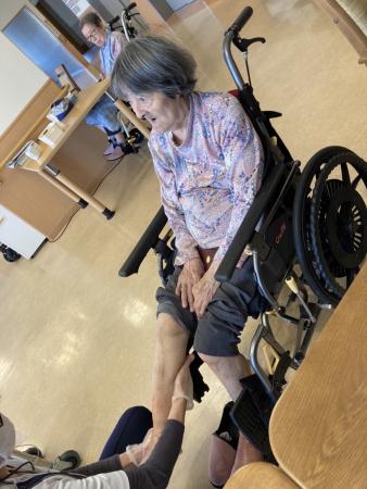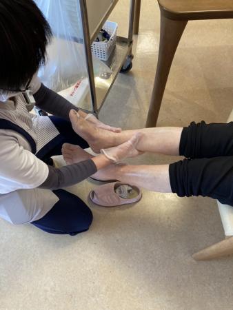 施設で行える対策として、機能訓練士とは別に看護師による足のマッサージを実施しています。