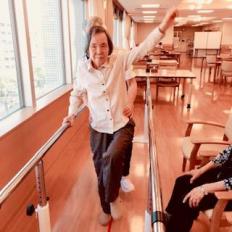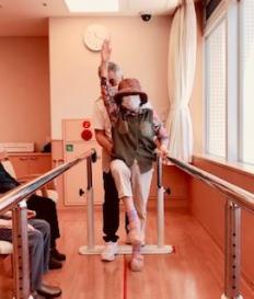 歩く事がスムーズなお客様は、足取りよく歩く事ができるように、バランス訓練に重きを置き取り組まれています。
